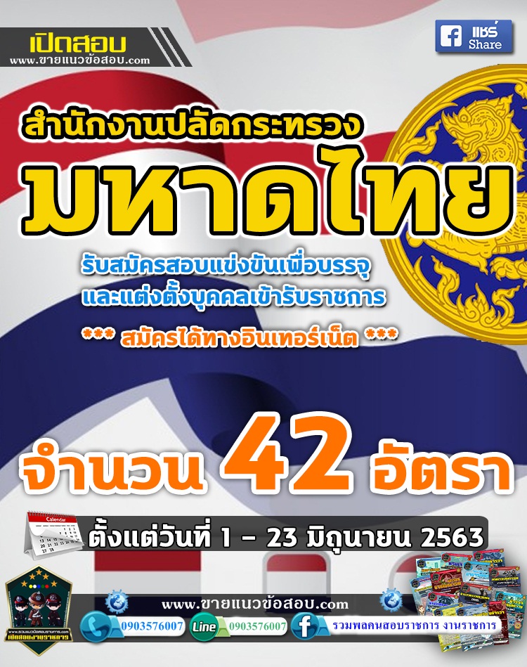 เปิดสอบ สำนักงานปลัดกระทรวงมหาดไทย จำนวน 42 อัตรา ตั้งแต่วันที่ 1 - 23 มิถุนายน 2563