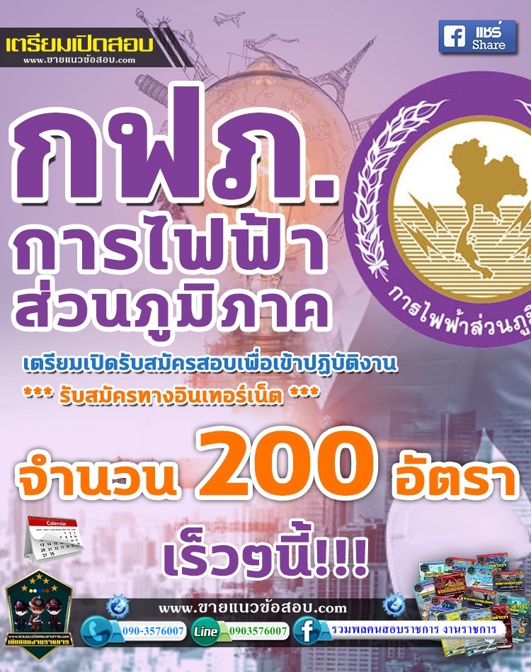 เตรียมเปิดสอบ การไฟฟ้าส่วนภูมิภาค กฟภ. จำนวน 200 อัตรา เปิดรับสมัครทางอินเทอร์เน็ต เร็วๆนี้!!!