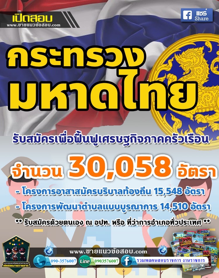 เปิดสอบ กระทรวงมหาดไทย จำนวน 30,058 อัตรา รับสมัครด้วยตนเอง ณ อปท. หรือที่ว่าการอำเภอทั่วประเทศ