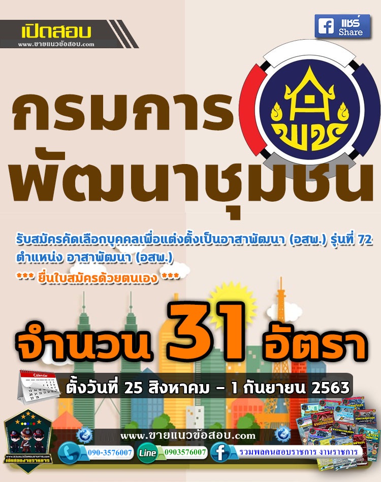 เปิดสอบ กรมการพัฒนาชุมชน เป็นอาสาพัฒนา (อสพ.) จำนวน 31 อัตรา ตั้งแต่วันที่ 25 สิงหาคม - 1 กันยายน 2563