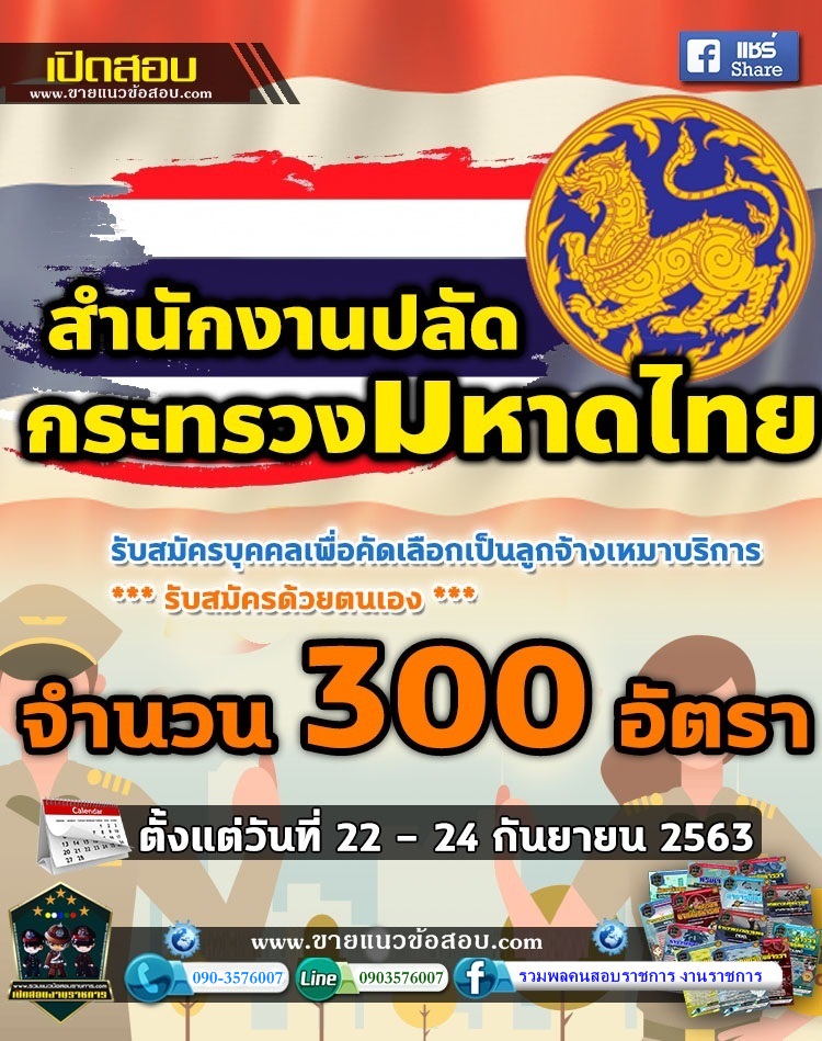 เปิดสอบ สำนักงานปลัดกระทรวงมหาดไทย จำนวน 300 อัตรา ตั้งแต่วันที่ 22 - 24 กันยายน 2563