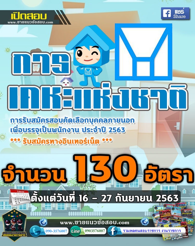 เปิดสอบ การเคหะแห่งชาติ จำนวน 130 อัตรา สมัครด้วยตนเอง ตั้งแต่วันที่ 16 - 27 กันยายน 2563