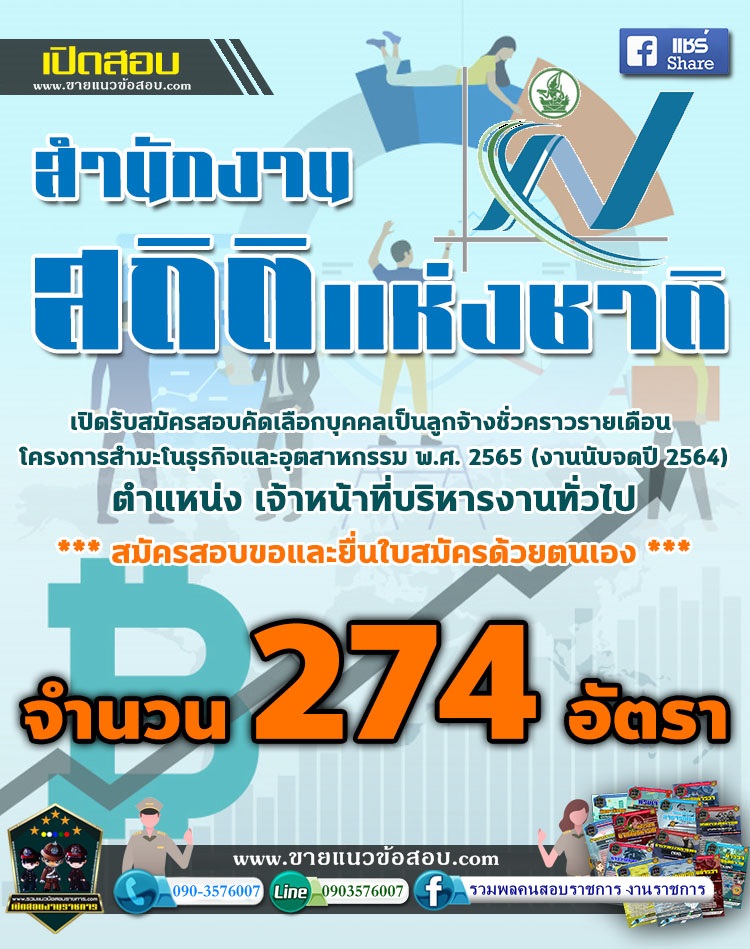 เปิดสอบ สำนักงานสถิติแห่งชาติ ในตำแหน่ง เจ้าหน้าที่บริหารงานทั่วไป จำนวน 274 อัตรา วุฒิปริญญาตรีทุกสาขา