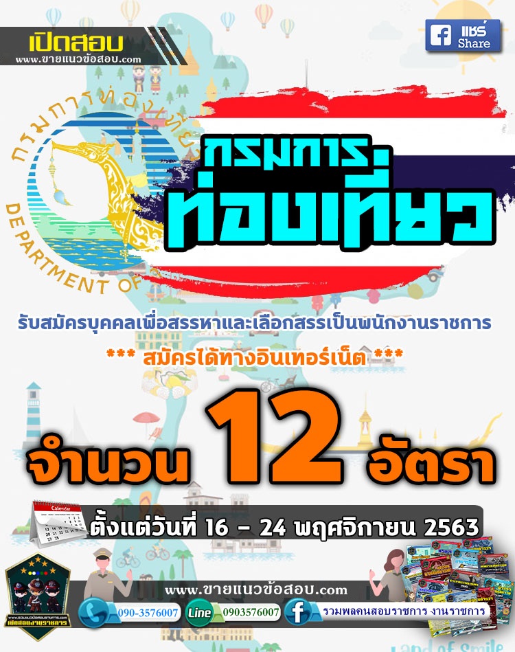 เปิดสอบ กรมการท่องเที่ยว จำนวน 12 อัตรา รับสมัครทางอินเทอร์เน็ต ตั้งแต่วันที่ 16 - 24 พฤศจิกายน 2563