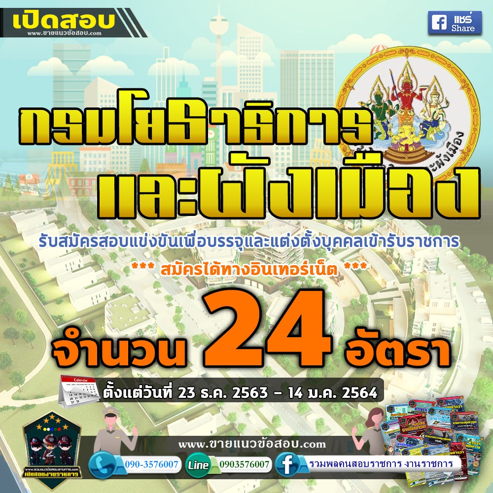 เปิดสอบ กรมโยธาธิการและผังเมือง จำนวน 24 อัตรา ตั้งแต่วันที่ 23 ธันวาคม 2563 - 14 มกราคม 2564